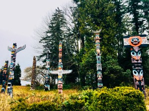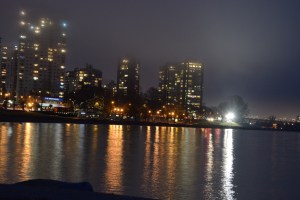 An der Waterfront gaben wir dann die letzten Hoffnungen auf, dass sich der Hochnebel noch verzieht…was hätten wir für ein tolles Panorama genießen können…vom Canada Place aus in Richtung North Vancouver und die sich dahinter erstreckenden Berge, bspw. Grouse Mountain, der sogar ein stadtnahes Skigebiet aufweisen kann. Grau in grau war der Horizont heute und nicht einmal die Kräne der angrenzenden Hafengebiete ließen sich vollständig erkennen. Weiter ging es trotzdem in Richtung Coal Harbor und Stanley Park. Wir haben Vancouvers größten Stadtpark, der quasi auf einer eigenen Insel liegt, trotz des Wetters einmal umrundet (Seawall, Totem Poles, Siwash Rock, Third Beach) und sind pünktlich mit Einbruch der Dunkelheit wieder beim Hotel gestrandet.