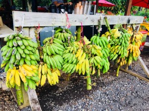 War ja jetzt auch schon einige Zeit vergangen, sodass wir uns pünktlich zur Lunchtime von Ka Haku Smoke Shack, einem der selfmade BBQ-Stände am Straßenrand, verführen ließen. Original hawaiian BBQ (Chicken, Pork, Salat und Reis + karamellisierte Banane mit Sahne und Zimt = *yammie*), serviert auf einem Staudenblatt und gegessen mit geschnitzten Bambusstäbchen — Das war den Stopp auf jeden Fall wert!