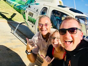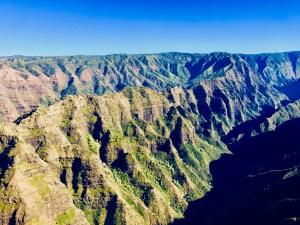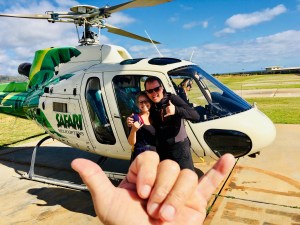 Roadtrip schön und gut, Vieles hat uns am Boden auf den bisherigen Inseln begeistert. Aber heute mussten wir mal die Perspektive wechseln 🙂 Daher auf zum Flugpatz und einchecken für unseren Helikopter-Rundflug über Kauai. Unser sehr motivierter Guide ließ keinen Scherz aus und sorgte damit vor dem Start für gute Laune…was für ein Zufall, dass sein „Liebchen“ aus Kiel stammt (oder dort zumindest viel Zeit zu verbringen scheint), denn so konnte er vor uns mit ein paar Brocken Deutsch und seinem Vorrat an „Ricola“ glänzen, den ihm die Liebste immer aus Deutschland mitbringt, da es diese Sorte in den USA nicht gibt…