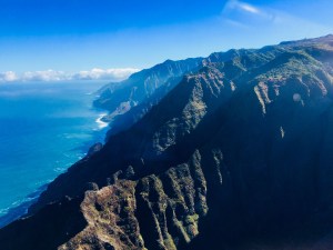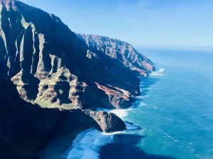 Beim Weiterflug zur Napali Coast tauchte auch der Ozean wieder vor uns auf und die kantigen Felsen, die wir gestern schon auf dem Kalalau Trail bewundert hatten. Der Anblick von heute war natürlich nochmals mächtiger und zeigte uns die Küstenlandschaft im vollem Ausmaß. Die Wellen krachten heute aber genauso stark, sodass der Beach, den wir gestern bewandert hatten, auch heute keine gemütliche Badezone war 🙂