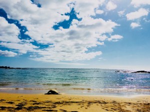 Erstmal den Poipu-Beach angesteuert, um bei kleinem Mittagssnack am Strand die Eindrücke sacken zu lassen. Wir taten es damit den drei „monk seals“ (Mönchsrobben) gleich, die es sich in der Sonne auf einer vorgelagerten Sandbank bequem gemacht hatten. In der Bucht dann sogar noch eine „turtle“ beim Schwimmen beobachtet und die Hühner und Hähne um uns herum waren sowieso selbstverständlich 🙂 (Noch nie so viele freilaufende, krähende Tierchen am Strand (oder sonst überall) erlebt – wem gehören die eigentlich?)