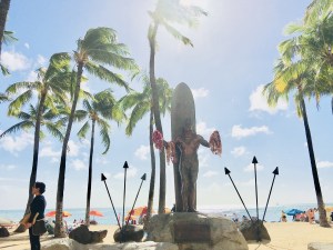 Wir mussten uns schließlich auch seelisch und moralisch auf den Folgetag vorbereiten…also Waikiki Beach von oben bis unten, strahlend blauer Himmel, Abkühlung im Meer und Flanieren auf der Shoppingmeile!