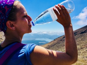 Was wir so schön nach oben gestiegen waren, musste natürlich irgendwie nach unten gehen. Und das war nicht ohne – die Emerald Lakes erreichten wir über eine Rutschpartie einen schmalen Grat voller Sand und Steine hinunter…Der Staub klebte richtig schön an allem, was mit Sonnencreme eingeschmiert war 🙂