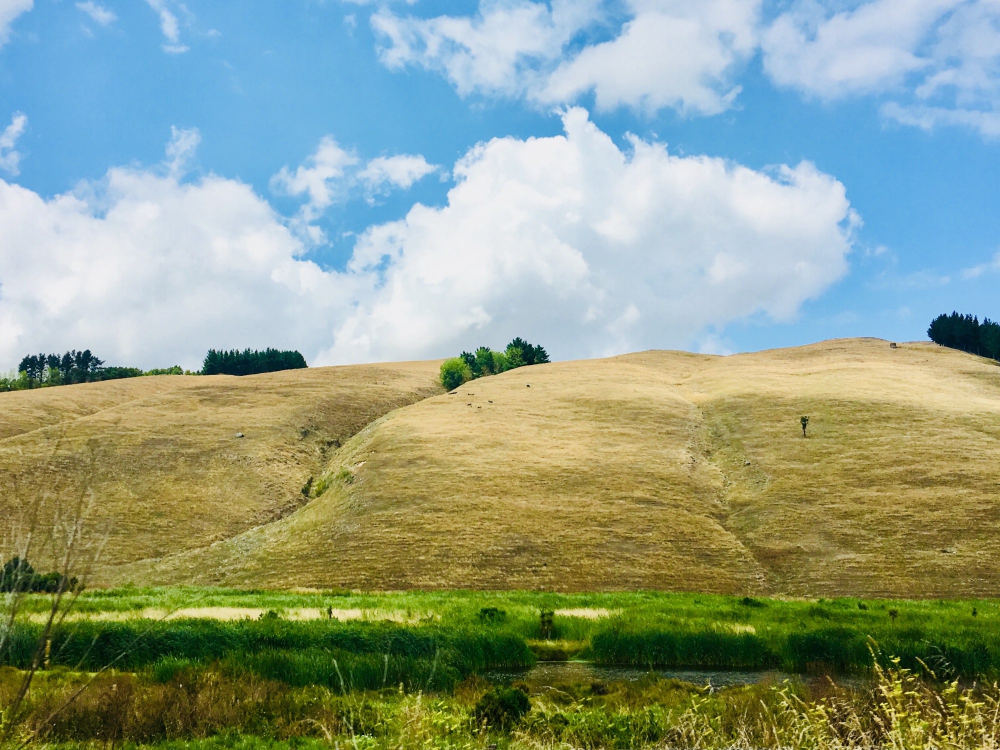 Der schier endlose Ritt auf der Straße folgte dann, weitere rund 340 km trennten uns noch vom heutigen Etappenziel Wellington an der Südspitze der neuseeländischen Nordinsel. Es ging also weiter auf dem Highway, der sich dann in den Classic New Zealand Wine Trail veränderte – schließlich fuhren wir ab jetzt durch die Weinanbauregionen Neuseelands. Allerdings versteckten sich diese wohl irgendwo im Hinterland, denn wir hatten auch heute mehr Schafe als Weintrauben gesehen…Selbst die in der Ferne erkannten, weißen Punkte auf den sonst so grünen Hügeln entpuppten sich beim Vorbeifahren schließlich als Schafe oder Lämmer 🙂 Kein Wunder bei den riesigen Ländereien, die hier zu vereinzelten Farmen zu gehören schienen. Wieder mal fiel uns auf, wie wenig dicht besiedelt die Insel ist – die größeren Orte nur mit einer Hauptstraße mit bunter Ladenzeile (hier schien oft die Zeit stehen geblieben zu sein und die Sorgen unserer hektischen Welt ganz weit weg…) und ein paar wenigen Straßen hiervon rechts und links abzweigend, dann wieder Weide an Weide und ein kleines Farmhaus irgendwo im Nirgendwo.