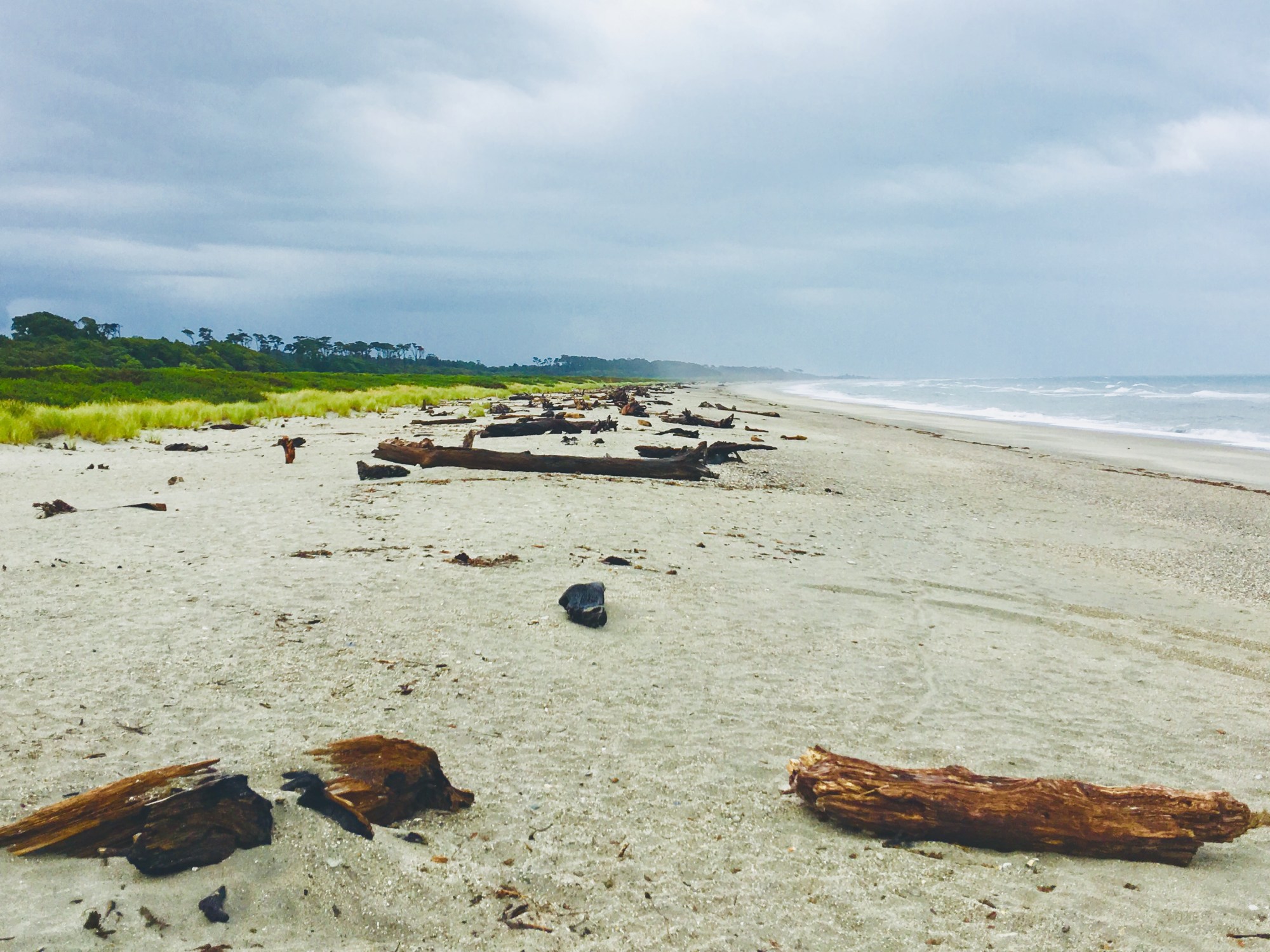 Immerhin etwas zu essen gefunden (mehr schlecht als recht…) und die Zeit nun für eine ausgiebige Mittagspause genutzt. Wind war mittlerweile in diesem kleinen Örtchen unweit der Ozeanküste reichlich vorhanden und pfiff uns um die Nase, dazu dicke, graue Wolkenbänder, die immerhin mit dem Regen eine Pause machten, als wir uns den Strandabschnitt mal kurz aus der Nähe angeschaut haben. So stellten wir uns die raue und einsame West Coast vor 🙂
