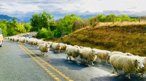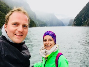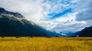 Wir hatten uns bewusst in Te Anau platziert, um die ausstehenden 120 km zum Fjord morgens gut fahren zu können – dennoch zeigte das Navi uns für diese vermeintlich kurze Strecke eine Fahrtzeit von 2,5 Stunden an! Puh – das war in unserer Planung so nicht berücksichtigt, denn um 10.30 Uhr sollte das Schiff ablegen 🙈 Wir sind ja mittlerweile gut vertraut mit neuseeländischen Straßen (oft zu lesen: „NZ roads are different – allow extra time“…), aber man weiß doch nie ganz genau, was einen erwartet…Wir legten also heute einen Zahn zu und brausten durch Fjordland (nur eine Schafherde mitten auf der Straße konnte uns kurz ausbremsen). Ließen den Lake Te Anau zurück, durchquerten das durch einen früheren Gletscher geformte Eglington Valley und sahen die Berge am Horizont höher werden. Weideland wurde mehr und mehr durch hohe Felswände begrenzt und das Tal wurde enger.