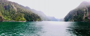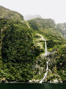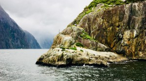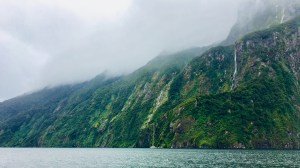 Je näher wir dem Fjord kamen, umso mehr änderte sich auch das Wetter in Fjordlandwetter… Die Wolken hingen tiefer und Nieselregen setzte ein. Den Homer Tunnel am Mount Talbot durchquert, ging es die letzten Serpentinen hinunter zum Fjord.