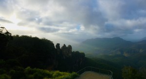 Aus unserem günstig gelegenen B&B schafften wir es fußläufig zum Morning Workout vor dem Erreichen der ersten Busse mit Asiaten zum Aussichtspunkt Echo Point zurück (oh ja – es kamen noch Busse an diesem Tag – haufenweise – mit haufenweise Menschen…). Morgenstimmung lag noch über den Three Sisters und die Wälder waren tatsächlich in Dunst getaucht.