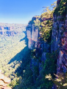 Auch bei den Katoomba Falls war nicht gerade an Wasserschauspiel zu denken mangels verfügbarem Wasserfall-Wasser…Die paar Treppenstufen zu den Felsen der Three Sisters hinunter, welche den Beginn des so genannten Giant Stairways bildeten, bestärkten uns nochmals in der Richtigkeit unserer Entscheidung, heute bei den kleinen Touren zu bleiben – denn auch das Bisschen war schon anstrengend genug!
