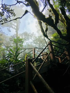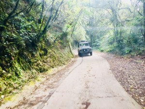 Der Weg zum „Mossy Forest“ war dann ein weiteres Abenteuer für sich, denn die Holperpiste alias Straße bot Schlaglöcher und Wurzelhindernisse ohne Ende und die Serpentinen den Berg hoch waren so schmal, dass wir froh waren um jede Kurve ohne Gegenverkehr! Kurzes aufatmen, als wir oben angekommen waren. Ein kleiner Trail führte uns über Holzplanken durch diesen moosigen und sicherlich uralten Wald – eigentlich bis zu einer tollen Aussichtsplattform mit Blick über das Tal. Leider heute ohne gute Fernsicht, da der Hochnebel dies nicht zuließ. Auf knapp über 2.000 Höhenmetern waren die klimatischen Verhältnisse so ganz anders als bisher in Malaysia erlebt, sodass wir fast ins „frösteln“ kamen. Daher wieder zurück zum Jeep, Haken dran!