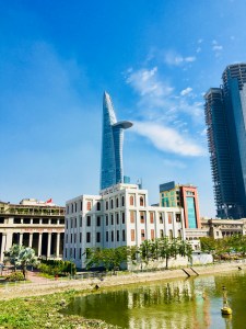 Heute führte uns der Weg zunächst zum Fluss Saigon. War aber nicht so idyllisch wie gedacht, denn aufgrund der mehrspurigen Straße direkt am Uferweg war es hupend laut und stank nach Abgasen und wegen einer großen Baustelle war der Fluss an einer Stelle fast aufgestaut und es sammelte sich hier allerlei Dreck und Müll. Die Promenade am Ufer entlang hatte die besten Jahre schon hinter sich und Risse und Schlaglöcher, die gut und gerne mal 70 % der Gehwege einnahmen, waren hier ebenfalls zu finden. Schade eigentlich, man könnte wirklich etwas draus machen, aber scheinbar zieht es die Leute nicht an den Fluss.