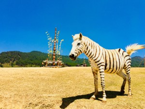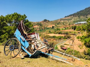 Wir entschieden uns nach einem kurzen Walk zunächst für die Fahrt nach Langbiang. Ein kleiner Ort vor Da Lat gelegen oder auch nur ein Stadtteil – wir wussten es nicht genau. Hier sollte man wandern können zu einem guten Aussichtspunkt über die Hochebene und das landwirtschaftlich genutzt Umland. Das Warten auf den Bus war weniger erfolgreich, sodass wir schließlich doch vom Taxi direkt vor dem Kassenhäuschen abgeladen wurden. Na gut, ein paar Vietnamesische Dong Eintritt waren drin, danach wurde es aber eindeutig zu touristisch. In großen Lettern prangte auf einem Hügel der Schriftzug „Langbiang“ und war natürlich das perfekte Selfie- und Foto-Motiv für alle anwesenden asiatischen Touristen. Man konnte entweder selbst ein paar Kilometer nach oben zum Aussichtspunkt wandern, einen Jeep buchen oder auf dem Rücken einiger Pferde, die irgendwie wie Zebras „angemalt“ waren, nach oben geschaukelt werden. Wir stampften mal etwas abgeschreckt los, ließen den Blick rechts und links über Erdbeerfelder und Gewächshäuser soweit das Auge reicht schweifen – und entschieden nach wenigen Minuten, dass uns das hier alles nicht so recht überzeugen konnte. Erinnerungen an die Cameron Highlands in Malaysia wurden wach… J Hätten wir hier mehrere Tage Zeit gehabt, wäre es wohl die längere Wanderung auf eigene Faust geworden, aber heute einfach nicht. Wir gaben uns an dieser Stelle mit dem „kleinen“ Ausblick zufrieden.