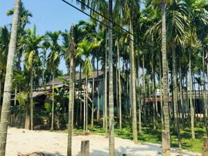 Mit unserer kleinen Truppe von 10 Leuten radelten wir quer über die Insel und durch die kleinen Dörfer, vorbei an Bananenstauden, Palmen, Reisfeldern, Grabstätten, Tempeln, Wasserbüffeln, Holzbooten…Anfangs kurz skeptisch, wie die Tour so wird, erhielten wir doch einen wirklich faszinierenden Einblick in das alltägliche Leben rund um Hoi An und sicherlich typischerweise auch in anderen ländlichen Gegenden, wurden von vielen Einheimischen, die sich selbst und ihr Heim dem Tourismus öffnen, gastfreundlich und lächelnd empfangen und staunten wieder einmal nicht schlecht, wie nah hier Reichtum und vermeintliche Armut zusammen lagen. Und dennoch: man kommt scheinbar auch ohne Fliesen- oder Teppichboden, sondern mit bloßem Lehm in einer Holz- und Blechhütte zurecht, es braucht nicht viele Möbel oder Spielzeug, das Leben funktioniert noch genauso wie vor 70 Jahren, denn schließlich verrichten die „Jungen“ die Arbeit noch immer genauso wie die „Alten“…