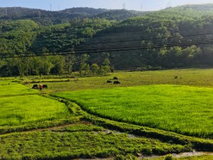 Nördlich des Passes wurden die Berge abgelöst durch saftig grüne Reisfelder soweit das Auge reichte, Wasserbüffel tümmelten sich oder wurden über die Felder getrieben, kleine Dörfer und Farmen zeigten erneut Einblicke in das ländliche Leben der Einheimischen.
