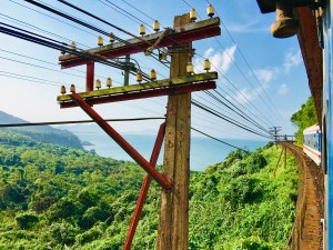 Unsere Fahrt führte eine malerische Strecke entlang der Küste gen Norden – über den so genannten „Wolkenpass“, der natürlichen Grenze zwischen Nord- und Südvietnam. Früher ein strategisch wichtiger Punkt und immerzu hart umkämpft (von den letzten Kämpfen zeugen die Bunkeranlagen der Franzosen und Amerikaner – diese sieht man aber von der Bahnlinie aus nicht), ist der Abschnitt heute bekannt für tolle Ausblicke auf die „Skyline“ von Da Nang im Süden und landwirtschaftlich genutzte Flächen im Norden.