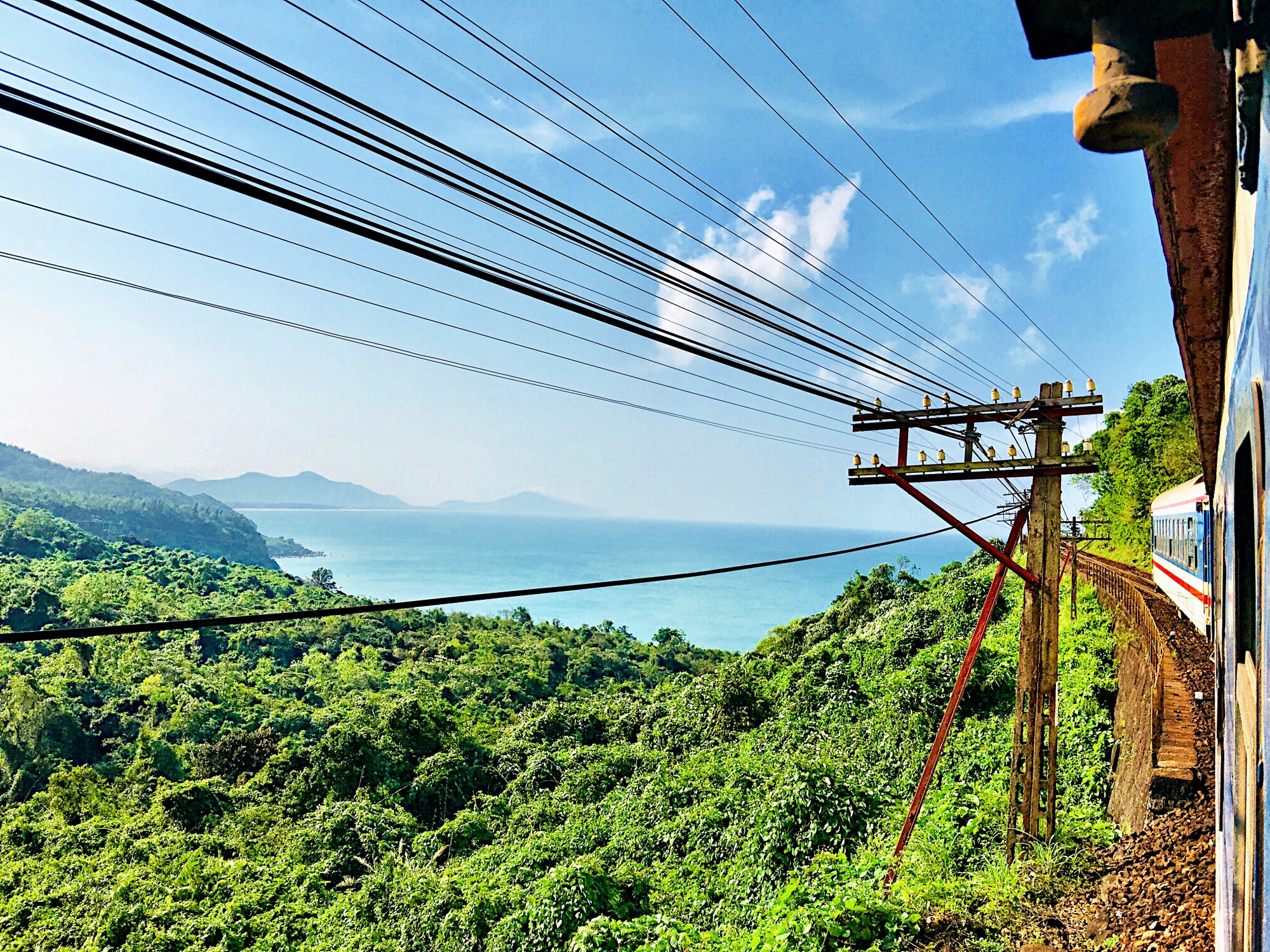 Unsere Fahrt führte eine malerische Strecke entlang der Küste gen Norden – über den so genannten „Wolkenpass“, der natürlichen Grenze zwischen Nord- und Südvietnam. Früher ein strategisch wichtiger Punkt und immerzu hart umkämpft (von den letzten Kämpfen zeugen die Bunkeranlagen der Franzosen und Amerikaner – diese sieht man aber von der Bahnlinie aus nicht), ist der Abschnitt heute bekannt für tolle Ausblicke auf die „Skyline“ von Da Nang im Süden und landwirtschaftlich genutzte Flächen im Norden.