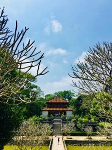 Da wir uns gestern so intensiv damit beschäftigt hatten, wie die Kaiser zu Lebzeiten ihre Zeit in Hue verbracht hatten, standen anschließend die drei „größten“ Kaiser-Gräber auf dem Plan. Nicht einfach auf einem Friedhof zu finden – nein – da hatte man sich kleine Parkanlagen und Monumente angelegt, damit die Nachwelt diese besichtigen kann! Aufgrund der Lage außerhalb der Stadt, drehten wir nun eine kleine Runde und hofften, alle Gräber gut mit dem Fahrrad zu erreichen.