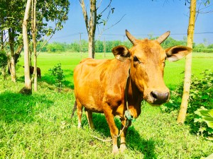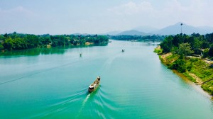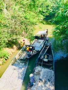 Zum Glück führte der nächste Abschnitt nicht an einer der Hauptverkehrsstraßen entlang, sondern zeitweise direkt am Parfum-Fluss oder durch ruhige Wohngebiete, gesäumt durch Bananenstauden und mit Zikaden übersäten Bäumen (zumindest war es teilweise so ohrenbetäubend laut, dass die Bäume übersät sein müssen, auch wenn man es auf den ersten Blick nicht sieht…). Wieder einmal ein guter Einblick in das alltägliche und einfache Leben hier in der Vorstadt bzw. auf dem Land.