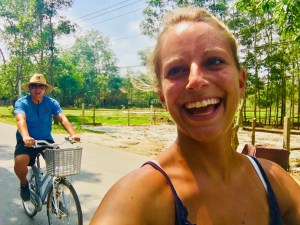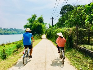 Wir waren mutiger geworden, was den Straßenverkehr in Vietnam angeht – und trauten uns heute sogar zu, ohne Guide mit dem Fahrrad durch Hue zu biken 🙂 Also über unser Hotel mal eben für 2 Dollar das Stück ein Bike angemietet, Route gecheckt und los