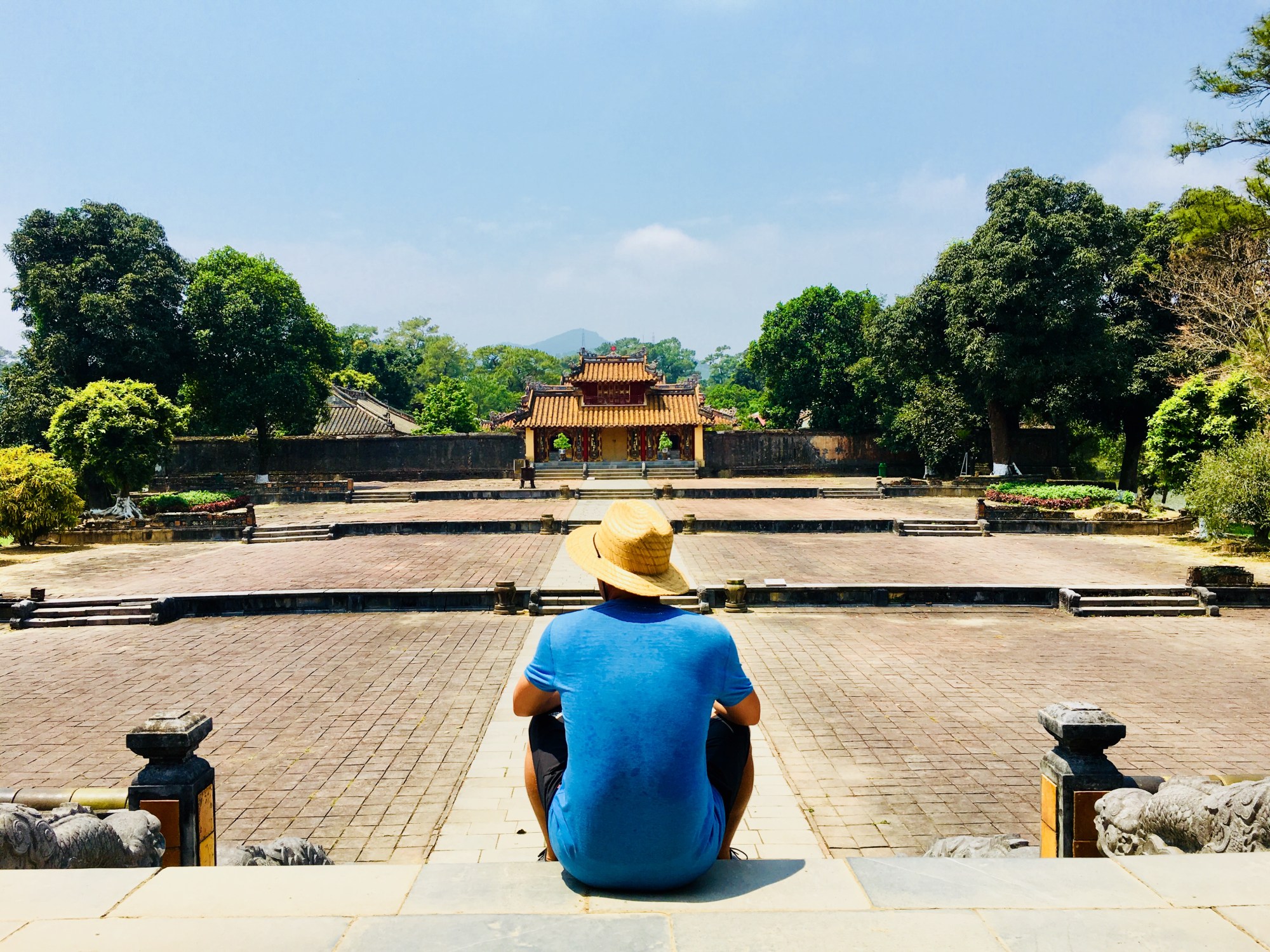 Von hier aus war der Weg zum Minh Mang Tomb gar nicht mehr so weit und wir konnten zur üblen Mittagshitze die Anlage betreten. Park, Seen, Statuen und zahlreiche Tempel und Monumente hatte sich der Herrscher unweit seines Grabes (irgendwo in einem Tunnelsystem unter einem großen Erdhügel) erbauen lassen. Zum Glück hatte hier nur der natürliche Zerfall seit 1841 und nicht der Krieg Spuren hinterlassen, sodass die Anlage wirklich sehenswert war.