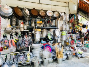 Durch die wuseligen Straßen in der Altstadt liefen wir kreuz und quer, hoch und runter, sodass es fast keine Straße geben kann, die wir noch nicht gesehen haben 🙂 Hier spielte sich wieder das ganze Leben vor den kleinen Ladengeschäften, in Nebenhöfen oder auf dem Gehweg ab. Jeder Straßenzug hatte eine spezifische Produktpalette anzubieten. Da gab es zunächst die Textilwaren, um die Ecke gebogen befand sich Blumengeschäft an Blumengeschäft, eine Kreuzung weiter reihten sich Stoffwaren- und Garngeschäfte aneinander, die Händler der nächsten Straße hatten sich auf Haushaltswaren und Kochbedarf spezialisiert, dahinter folgten die Verkäufer von Zubehör für die heimischen Altaranlagen! Wir fragten uns wirklich, ob sich die Leute ihr Business hier tatsächlich selbst aussuchten und dies alles so passend aufeinander abstimmten oder wie viel in der „sozialistisch orientierten Marktwirtschaft“ doch vom Staat gesteuert und zugewiesen wurde…Dennoch faszinierend – wie ein großer Marktplatz mit vielen verwinkelten Straßen.