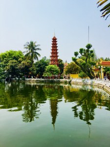 Von der Großstadt am Roten Fluss erkundeten wir heute nur einen Mini-Ausschnitt, aber das Zentrum und ein paar Sightseeing-Spots ließ sich gut zu Fuß ablaufen: angefangen beim Literaturtempel (allerdings mit Schulklassen so überlaufen, dass wir uns die Besichtigung der Anlage sparten), vorbei am Flag Tower zum Ho Chi Minh Mausoleum am Ba Dinh Square (Wahnsinn, wie die Menschen hier in Reih und Glied, bewacht durch die Nationalgarde, Schlange standen, um den balsamierten Leichnam des Staatsmannes anzusehen), zur Tran Quoc Pagode und über die kleine Insel im Truc Bach Lake wieder in die Altstadt zurück.
