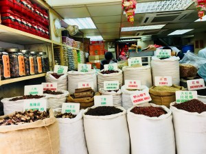 Von hier aus war es nicht mehr weit zu einer uns schon ganz gut bekannten Ecke – der Dried Seafood Area 🙂 Matthew konnte uns immerhin mal erklären, was in den Auslagen so „attraktiv“ anzusehen war: getrockneter Fischmagen, Jellyfish, Shrimps, Seegras, Seepferdchen… – jeder „Cracker“ sollte für irgendwas gut sein und bei körperlichen Beschwerden, Verdauung oder Haarwuchs helfen. Wer´s mag… Direkt daneben noch schnell im alten Western Market flaniert, aber von außen machte das Gebäude mehr her als von innen, den ein Ballsaal im Obergeschoss und die Stoffhändler mit ihren kleinen Geschäften waren für uns nur wenig von Interesse.