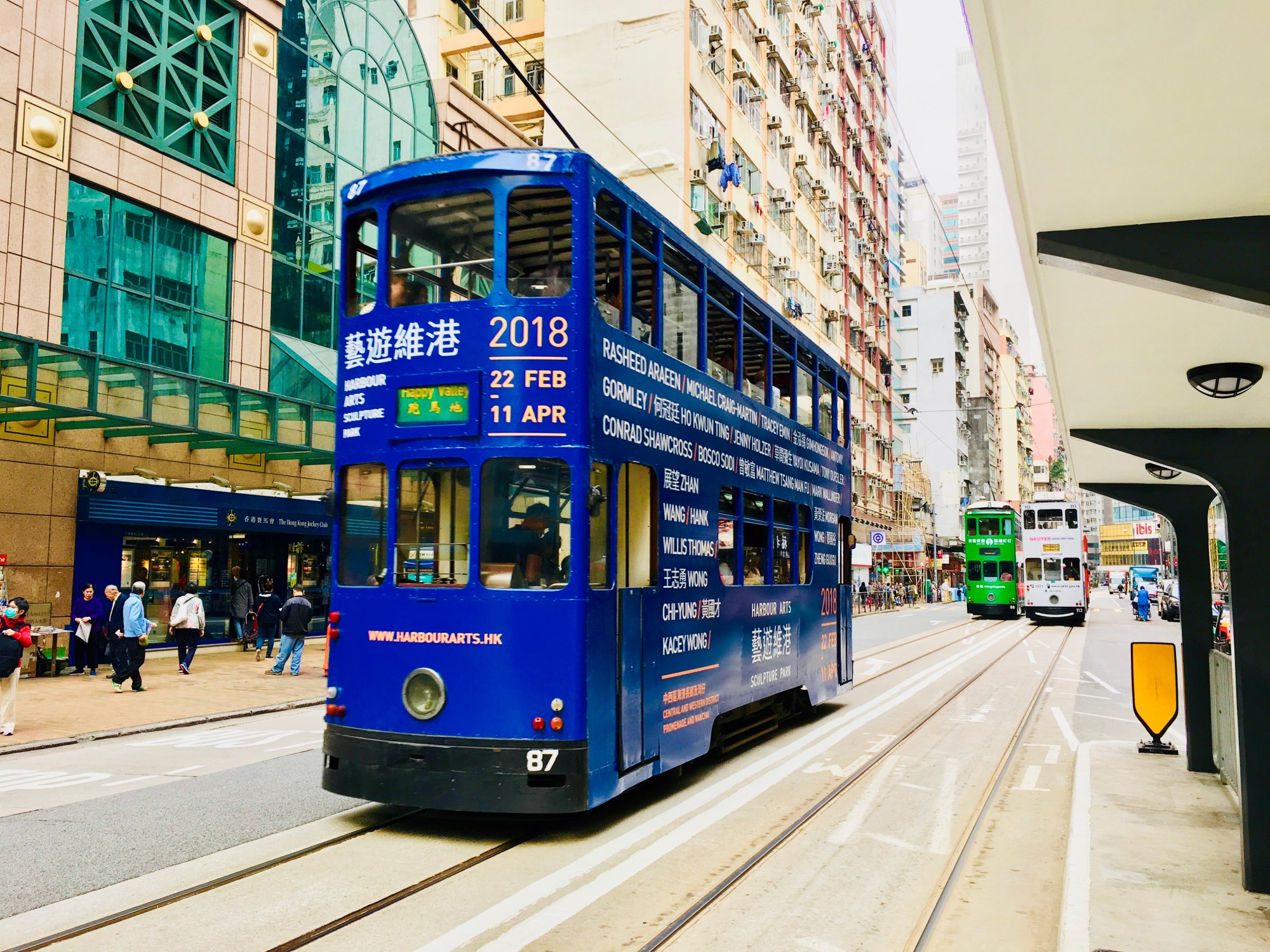 Nach einer kurzen Auszeit am Mittag durfte eines nicht fehlen: eine Fahrt mit der urigen Hong Kong Tramway. Die schmale Doppeldecker-Tram prägt schon seit über 100 Jahren das Straßenbild auf dem nördlichen Teil Hong Kong Islands und ist mit knapp 25 Cent pro Fahrt (egal wie lange!) eine gute Gelegenheit, die Beine nach einem langen Fußmarsch durch die City auszuruhen. Also nutzten wir die Gelegenheit, dass sich eine Haltestelle direkt vor unserem Hotel befand, und fuhren mit der nächstbesten Tram ein wenig hin und her 🙂 Es gelang uns fast, aus dem Oberdeck in die Wohnungen der Hong Konger zu schauen, die sich auf gleicher Höhe befanden – aber bei den recht kleinen Fenstern der ohnehin kleinen Wohnungen doch etwas schwierig.