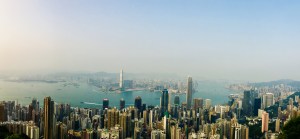 Back in Town stand heute noch eine weitere „Gipfelstürmung“ auf dem Plan – naja, zumindest fast. Aber wir ließen es uns nicht nehmen, den Victoria Peak zumindest ansatzweise zu erklimmen, um die höchste Aussicht auf die Skyline zu erhaschen! Wir entschieden uns dieses Mal statt laufen direkt für den Bus, denn weitere 2-3 Stunden für eine Wanderung nach oben wollten wir heute nicht mehr investieren. Am späten Nachmittag hatten wir nach Ankunft auf dem „Hausberg“ Hong Kongs gerade noch genug Licht, um die City zu sehen, die Ausmaße zu erahnen, das Hafengeschehen und Treiben auf dem Wasser zu beobachten oder die Häuser am Hang zu zählen (wer es sich leisten konnte, hier oben zu wohnen, schaute definitiv von oben auf die Stadt herab), obwohl sich schon eine leichte Dunstglocke über der Skyline niederlegte – könnte auch ein Anzeichen für die air pollution sein, aber das können wir noch nicht vollends beurteilen.